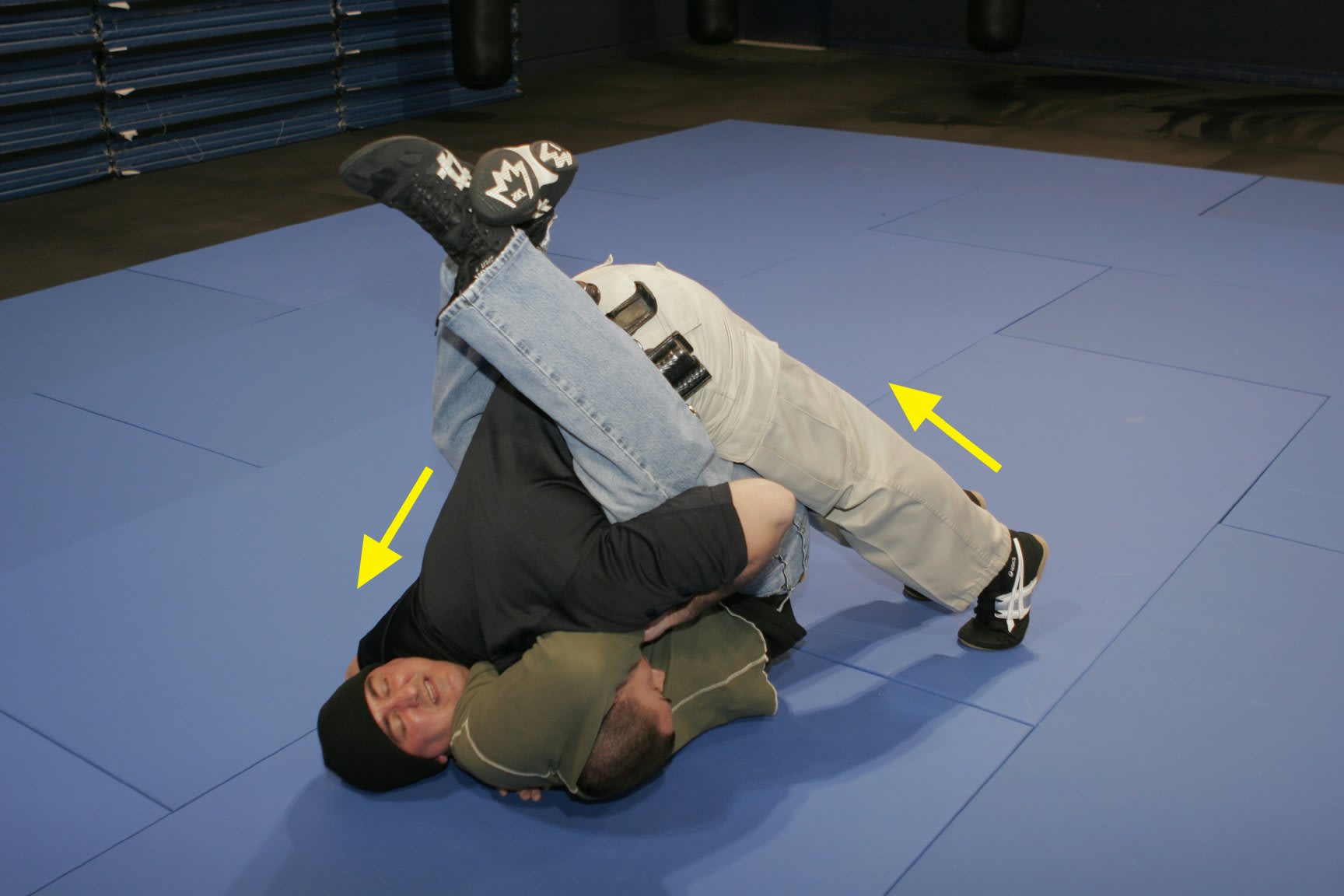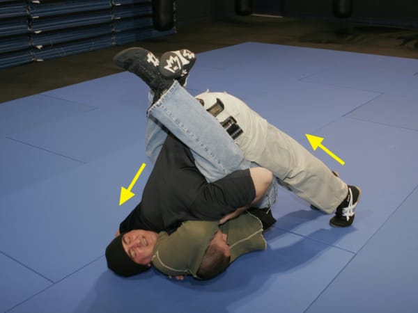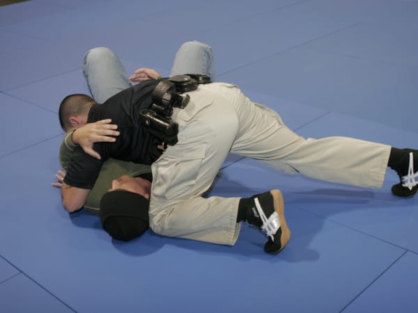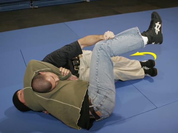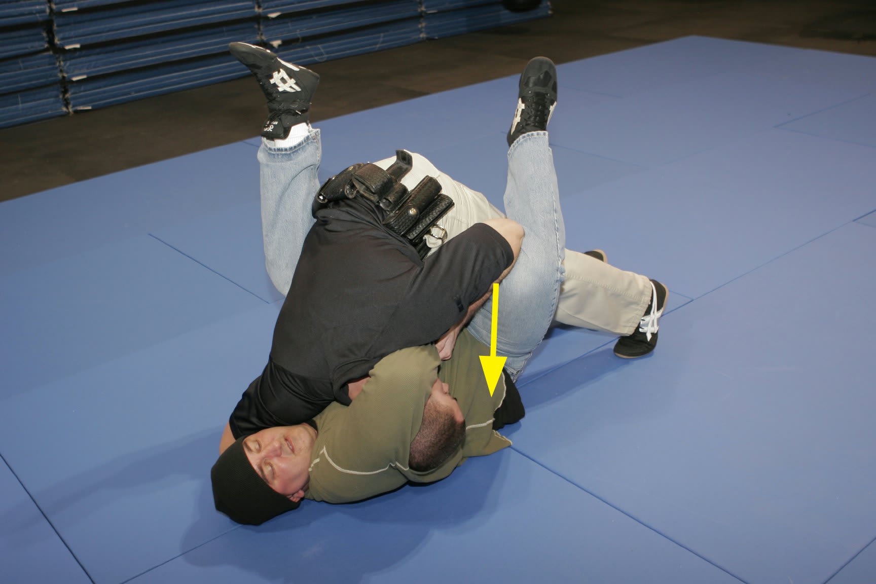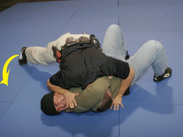 Continue moving to the choke side to break the choke hold and assume a superior position. You can now transition to your feet or another force option.
