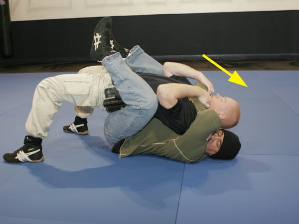 If you find yourself against an MMA aficionado, you'll want to know how to get out of a choke hold. View detailed photos showing escape techniques to defend against the rear naked choke and the guillotine choke. Read our full article, "Choke Escapes." Photos by Jimmy Lee.