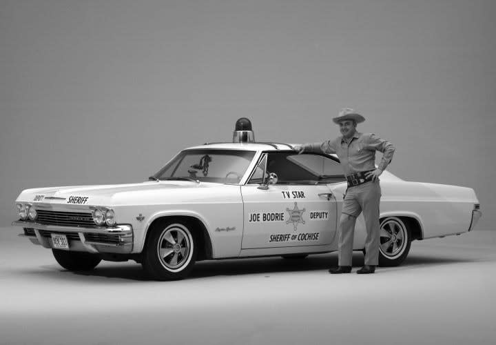 The two-door 1965 Chevy Impala Super (full-size hardtop) patrol vehicle was based on a retail model that sold 1 million cars in 1965, the first year of the fourth-gen Impala. Chevy offered three engines, including its famous big-block V8. Photo courtesy of General Motors.