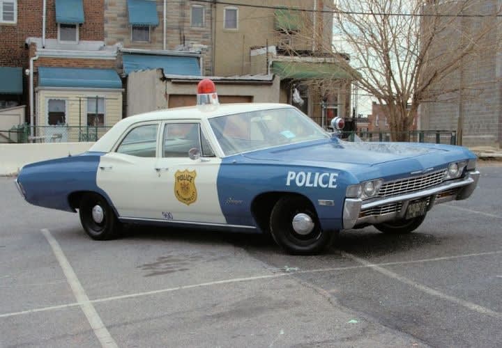 This 1967 Chevy Biscayne, which was used by the Baltimore Police Department, was one of the most powerful patrol cars of the time. Both the Biscayne and Bel Air arrived with a "big-block" 396-cubic-inch V8 engine beginning in 1965. A year later, Chevy introduced a 427-cubic-inch V8 engine to the vehicle. Photo via Zizzy/Flickr.