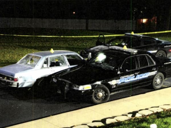 A Cleveland Police Dodge Charger was hit by 19 rounds likely from other officers at the end of a deadly 20-minute pursuit.
