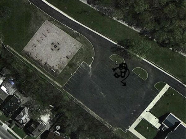 This Google Maps overview shows the access road where officers confronted the two suspects. The middle school is located in the upper left section of the photo.