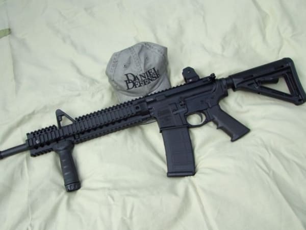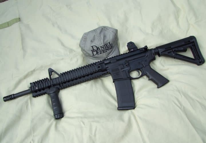 Although the Daniel Defense M4, or DDM4, is a factory rifle, it looks like it was built by a custom shop. This carbine ships with quad fore rails, a removable backup sight, Magpul MOE adjustable stock, Daniel Defense vertical fore grip, a flared/beveled trigger guard, a flared mag well, and a Magpul 30-round PMAG.
