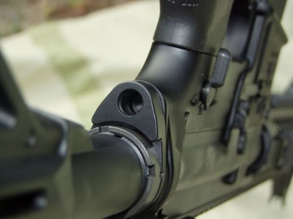 Daniel Defense's DDM4 comes with a Magpul MOE adjustable stock, which is a great choice for a couple of reasons. First, it uses a Mil-Spec recoil tube, which is just a smidge larger and more rugged than a commercial one. Next, the stock is designed to fit the operator with a rugged polymer butt pad. This butt pad doesn't slide on slick tactical vests or nylon shirts.