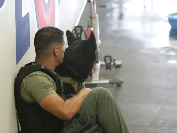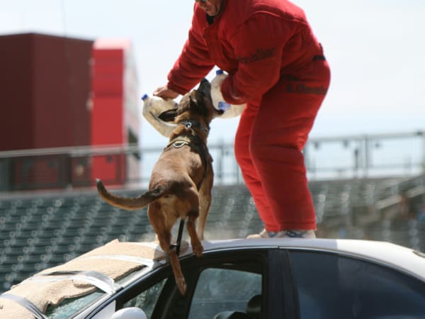 Law enforcement agencies from Arizona, California, and Mexico were represented. The K-9 competition, in which handlers and their dogs compete in various exercises and events to simulate real-life scenarios, is open to the public. Scenarios include: handler protection, tactical building search, building search, agility/obstacle course, area search, narcotics, and explosives search. Because the building, narcotics, and explosives searches must take place in controlled environments, these are not open to the public.