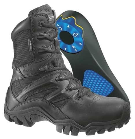 Delta leather and nylon boots feature Bates' Individual Comfort System Technology. The midsole has a removable disk that the wearer can rotate among four zones to control firmness, cushion, and stability.