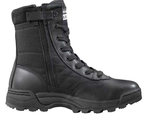 Original S.W.A.T.'s Classic 9-Inch Side Zip boot is made to be light and comfortable like an athletic shoe with the durability and support of a boot. Its triple-stitched upper of full-grain leather and 1,000-denier nylon has a polishable full-grain leather toe. A YKK zipper with Velcro closure makes for easy on and off, while a stitched self-cleaning Multi-Tred carbon rubber outsole provides traction and durability.