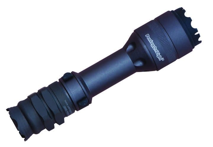 PentagonLight's Porcupine is a handheld tactical-style light that runs on two CR-123A and puts out 70 lumens. It's made from military-grade aluminum with the light and battery compartments O-ring sealed so you can safely operate it in the wettest of conditions. What sets this light apart and gives it its name is a retractable lamp bezel that has several sharp serrations which are quickly and easily exposed, and just as quickly retracted, allowing you to use the Porcupine as an impact weapon. While it may sound mean, this light will mark the person you use it on, helping ID the perpetrator. PentagonLight's Porcupine has a clip that secures the light where you put it. It's also roll-proof, thanks to its pentagon-shaped tail cap.