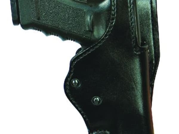 DeSantis' Chek-Mate 003 is one of the strongest level II duty holsters available. It is built from premium black saddle leather and high-strength polymers. The passive knuckle break in conjunction with the Redi-Lok mechanism, allows for a safe, rapid draw. The Redi-Lok facilitates quick re-holstering with the first level of security working automatically. The style 003 features a Border Patrol-style belt hanger that will accommodate most 2- to 2.25-inch duty belts and has a polymer sight track. The Chek-Mate is currently available for Glock 17, 19, 22, 23, and 36 models.