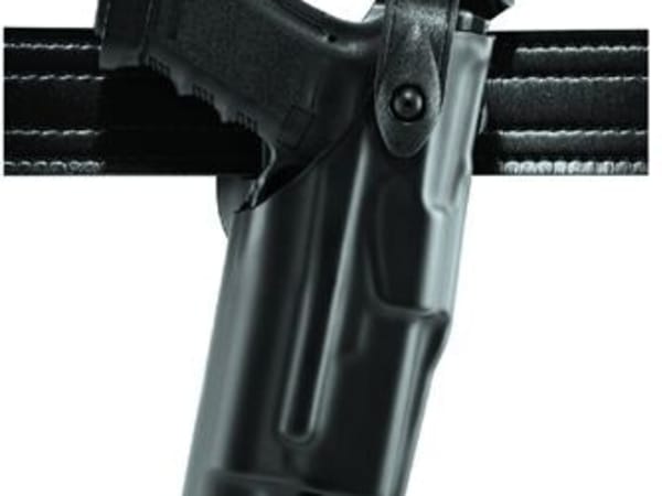 Safariland's Model 6360 holster features Safariland's Automatic Locking System and SLS rotating hood design for a smooth draw and greater protection against gun grabs. An internal locking device retains the weapon in all directions when the SLS is open. Once the weapon is holstered, it "locks" into place. The Model 6360 is completely operable with the thumb, making it very instinctive to use.  Once the retention devices are released, the weapon can be drawn straight out of the holster with no twisting or other motion required.  The 6360 can also accommodate weapons with tactical lights.