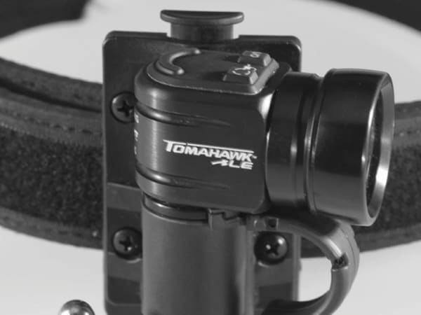 Designed for law enforcement, First-Light USA's Tomahawk LE tactical light with belt TRS clip has an ultra-bright white light plus red and blue LEDs that can be used individually or together in a safety strobe mode-alternating white, red, and blue strobing.