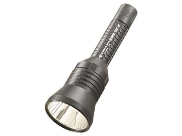 The Streamlight Super Tac X features Streamlight's C4 LED technology with a 50,000-hour lifetime, delivering up to 200 lumens and 40,000 candela. The light uses a deep-dish parabolic reflector to produce a long-range targeting beam with optimum peripheral illumination to aid in navigation. The new model includes high- and low-intensity modes plus a strobe light.
