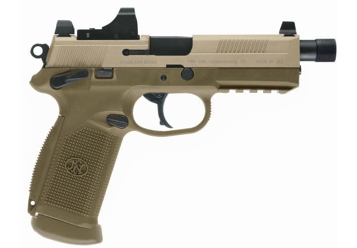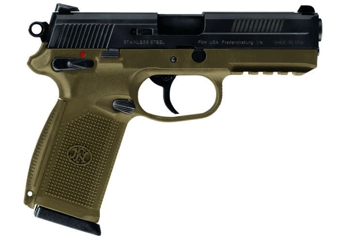 FN continues to pursue the military market for its pistols. The FNX-45 is available with an earth-colored frame and a black slide.