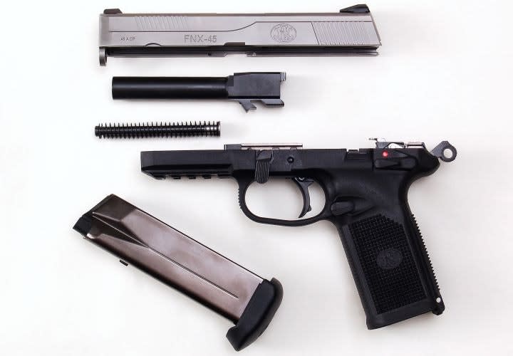 Disassembling the FNX-45 into its five basic parts is extremely easy.