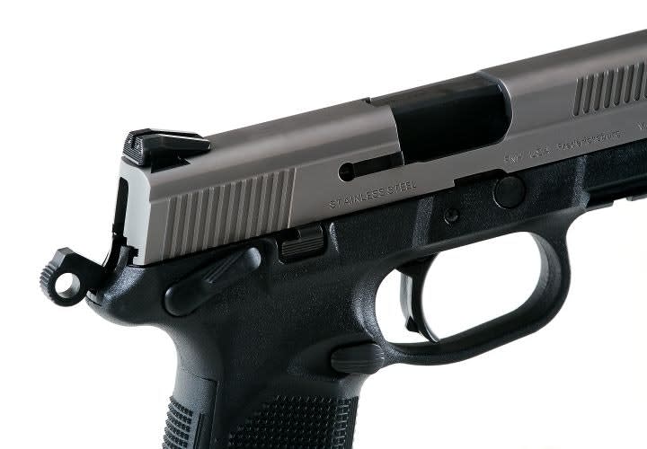 The FNX-45 is available is black polymer with a stainless steel slide.