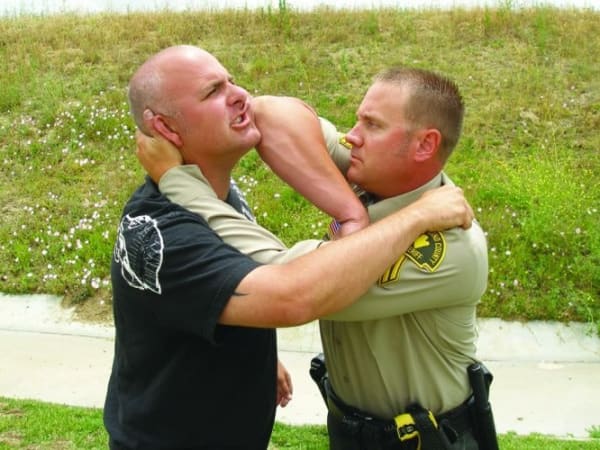 An effective elbow strike can devastate the suspect as a knock-out blow. The faster you can end this close-up encounter, the safer you will be.
