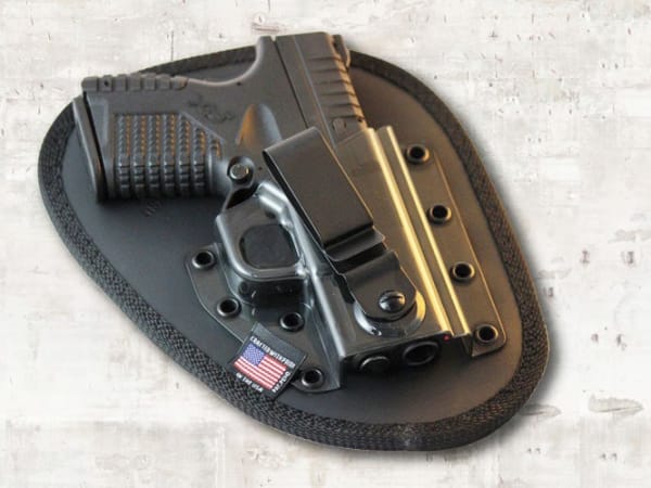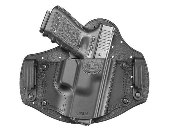 Fobus' IWBM holster is designed to keep a low profile and is built from a flexible back that buffers between pistol and body, a non-collapsing shell that covers the pistol, and two belt clips to position the holster at waistband height. The holster is lightweight, completely washable, ventilated, and durable. This universal IWB holster is designed to accommodate multiple same-sized pistols, and therefore requires no shell replacements when changing between pistols of the same size.