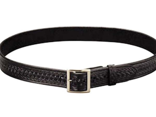 Triple K's new 1.5-inch Center Bar Buckle Garrison Belt is made from 9/10-ounce heavy saddle leather. It features a center bar square buckle favored by many departments. Available in black or walnut oil brown in even sizes from 32 to 52 inches with plain or basketweave finish.