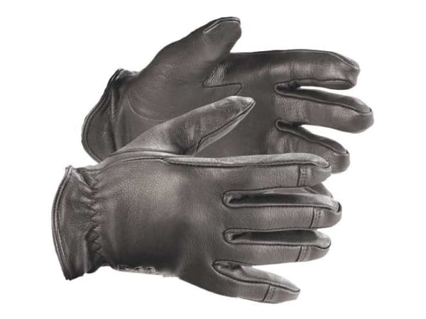 The RFK300 Resister glove from Safariland brand Hatch features a simple design constructed of goatskin leather. The company's 100% Kevlar interlock knit lining offers moderate cut resistance and the Ergo-Cut floating thumb design offers freedom of movement. It also contains a wrist-length elasticized cuff to secure the glove. Sizes range from extra-small to triple extra-large.