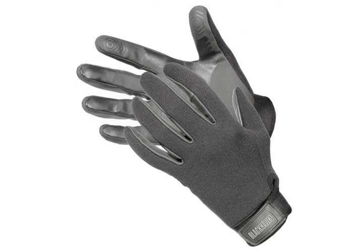 Blackhawk's Neoprene Patrol Gloves give law enforcement officers protection for any job. Ergonomic and flexible, the gloves are designed to provide warmth and dexterity in wet or dry conditions. The polyurethane palms contain gel contact points for durability and control in various environments. With narrowed box-tip fingers and adjustable hook and loop closure, the gloves offer a precise feel and a secure fit.