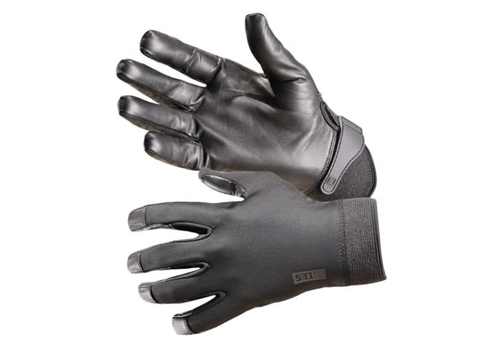 5.11 Tactical's Taclite 2 gloves feature lightweight construction of fine-grain seamless sheepskin, leather palm, and a four-way stretch Lycra back for fit and breathability. Patented Tactical Touch precision fingertips, snug fit, and a hook-and-loop Breathoprene wrist closure enhance fit.