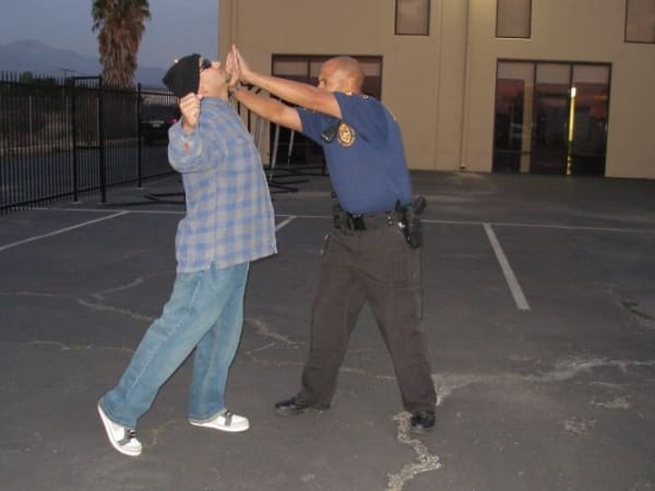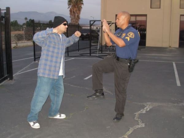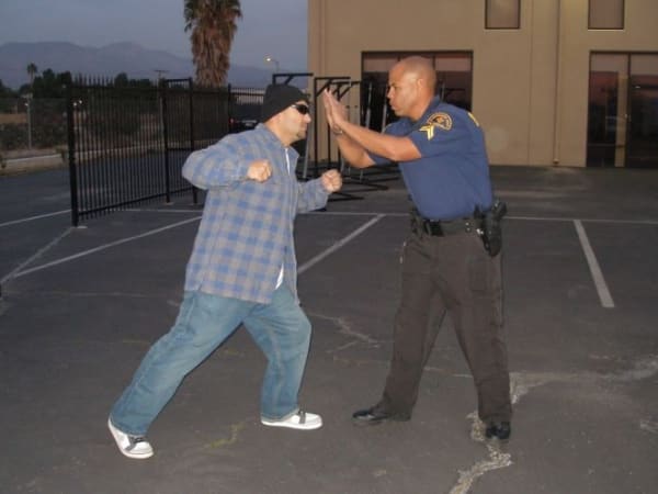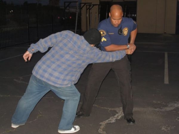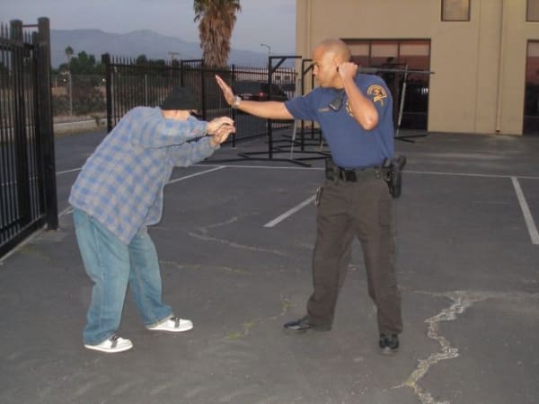 Defending With Arms: An added benefit of this technique is that the suspect will be forced onto his heels and will be less mobile.