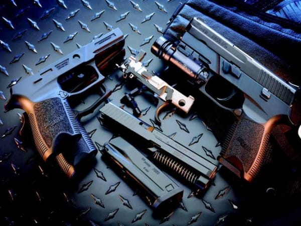 Paul Scarlata explained the appeal of this pistol in his July 2008 "Arsenal" feature: "With its new P250, SIG Sauer has embarked upon a novel concept in semiautomatic handguns — the modular pistol. The P250 is based on a polymer-grip module and metal frame/fire control assembly. This assembly is in fact the 'pistol,' as it bears the serial number, which can be removed and inserted into another grip module. "The P250 is available with two differently sized grip modules: small for the 9mm, .357 SIG, and .40 S&W, and large for the .45 ACP. Both are available in Full, Compact, and Sub-compact configurations with three grip circumferences … It can be ordered with either a long or short trigger."
