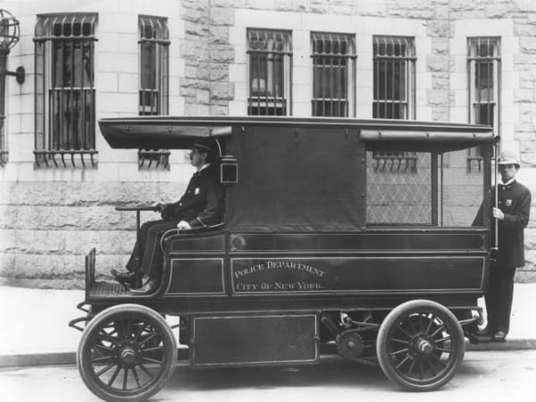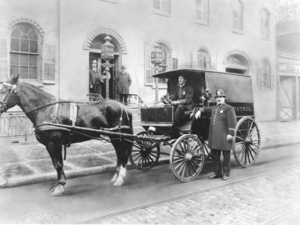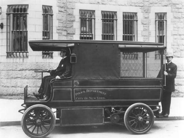 The NYPD began using horse-drawn police wagons in the later part of the 19th Century to move police forces from place to place. Motorized wagons came into use later, and it wasn't until the 1920s and 30s that the department began regularly using motorized patrol cars. Plymouth two-door radio cars were the standard in the late 1930s and 1940s. By the 1970s, the Plymouth Fury was the mainstay. Black-and-white photos courtesy of the New York City Police Museum.