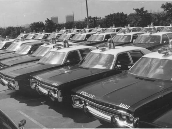 The NYPD adopted the Plymouth Fury as its 1970s patrol unit. This photo shows a fleet lot in 1971.