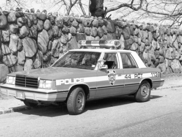 The major squad cars of the 1980s were Chrysler's St. Regis/Gran Fury. This photo is from 1986.