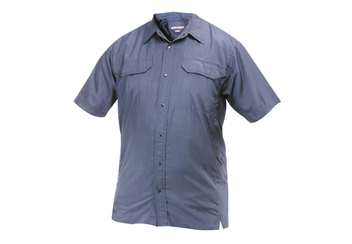 Tru-Spec's 24-7 Series Camp Shirt is made from a lightweight, 100% polyester fabric and is vented for coolness and comfort. It has no shoulder seams, which allows for a comfortable, loose fit and is a good concealed carry option, with easy access inside the shirt via the front snaps. And the two chest pockets and two concealed secure hip pockets offer storage for important documents and accessories. The 24-7 Series Camp Shirt is available in navy, khaki, coyote, and charcoal.