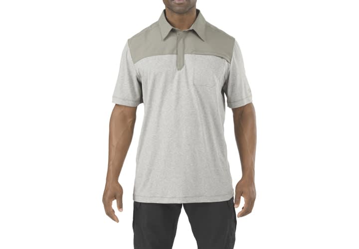 Combining the rugged performance of 5.11 Tactical's Rapid Response shirts with the traditional professionalism of a contemporary men's polo shirt, the 5.11 Rapid Response Polo offers versatility and wearability designed for hectic work environments. The torso and sleeves of the Rapid Response men's polo are crafted from a snag-resistant, moisture-wicking, anti-microbial polyester fabric, while the proprietary Freedom Flex mechanical stretch fabric at the collar and shoulders dramatically enhances comfort and mobility. Full-length running gussets ensure full freedom of movement, and a secure zippered chest pocket at the chest offers additional storage space.