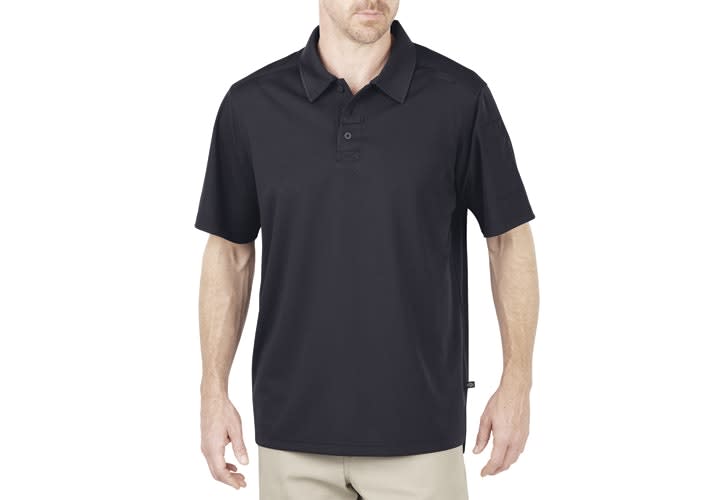 The Dickies Tactical Polo Shirt combines durable and lightweight materials to create the ultimate warm weather polo for men and women. It's available in men's and ladies' versions. The snag-resistant fabric of this shirt has moisture-wicking capabilities and is wrinkle resistant. This polo shirt features a mesh underarm gusset for added mobility and a drop tail with vents on each side. Additional features include a welt pencil pocket on the sleeve, mic clips on both shoulders, a no-roll collar, and non-break melamine buttons.