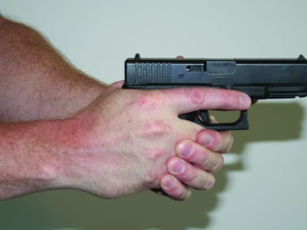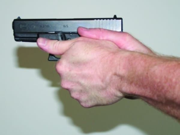 Having a firm grip on your semi-automatic handgun is key for several reasons, the most important of which is to avoid what's commonly called "limp wristing" the gun. When a shooter has a weak or loose grip on the gun, it usually results in the firearm not cycling properly, causing the gun to jam. A firm grip will also help you on assignments, where you need to fire from a marine platform. Read "Perfecting Your Handgun Grip" for more. Photos courtesy of Michael Rayburn.