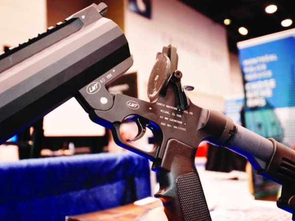 A.L.S. Technologies showed two new less-lethal grenade launchers at IACP, one in 37mm and one in 40mm. The launchers have break-open design for quick loading, a hammer lock to prevent accidental discharge, and collapsible stocks. They also feature Picatinny rails for mounting optics and accessories. A.L.S. says the new launchers are the lightest less-lethal launchers on the market, weighing in at just under four pounds empty.