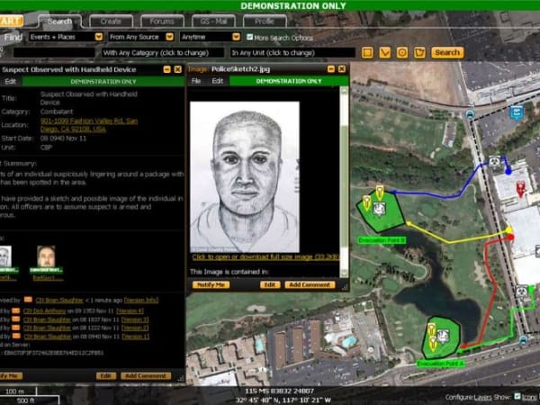 GeoSuite is a real-time intelligence tool that runs on any Windows-based computer and on numerous mobile devices. Using the software first responders have immediate access to real-time information and historical data on an area. The software works when connectivity is available and when connectivity fails. With no connection, it supplies the user with collected and stored data until connectivity is restored. General Dynamics says that responders can be trained to use the software in 90 minutes.