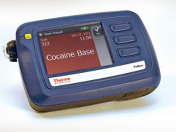 Thermo Scientific's TruNarc synthetic drug analyzer is a lightweight portable device that uses a laser to identify a substance through plastic or glass. That means an officer never needs to touch the substance in question, reducing exposure and preserving evidence. This handheld Raman analyzer captures all scan results, including time and date stamp, and automatically uploads the information to the agency's server via the officer's synced laptop. Thermo Scientific constantly updates its software library to keep on top of new drugs such as "bath salts" variations.