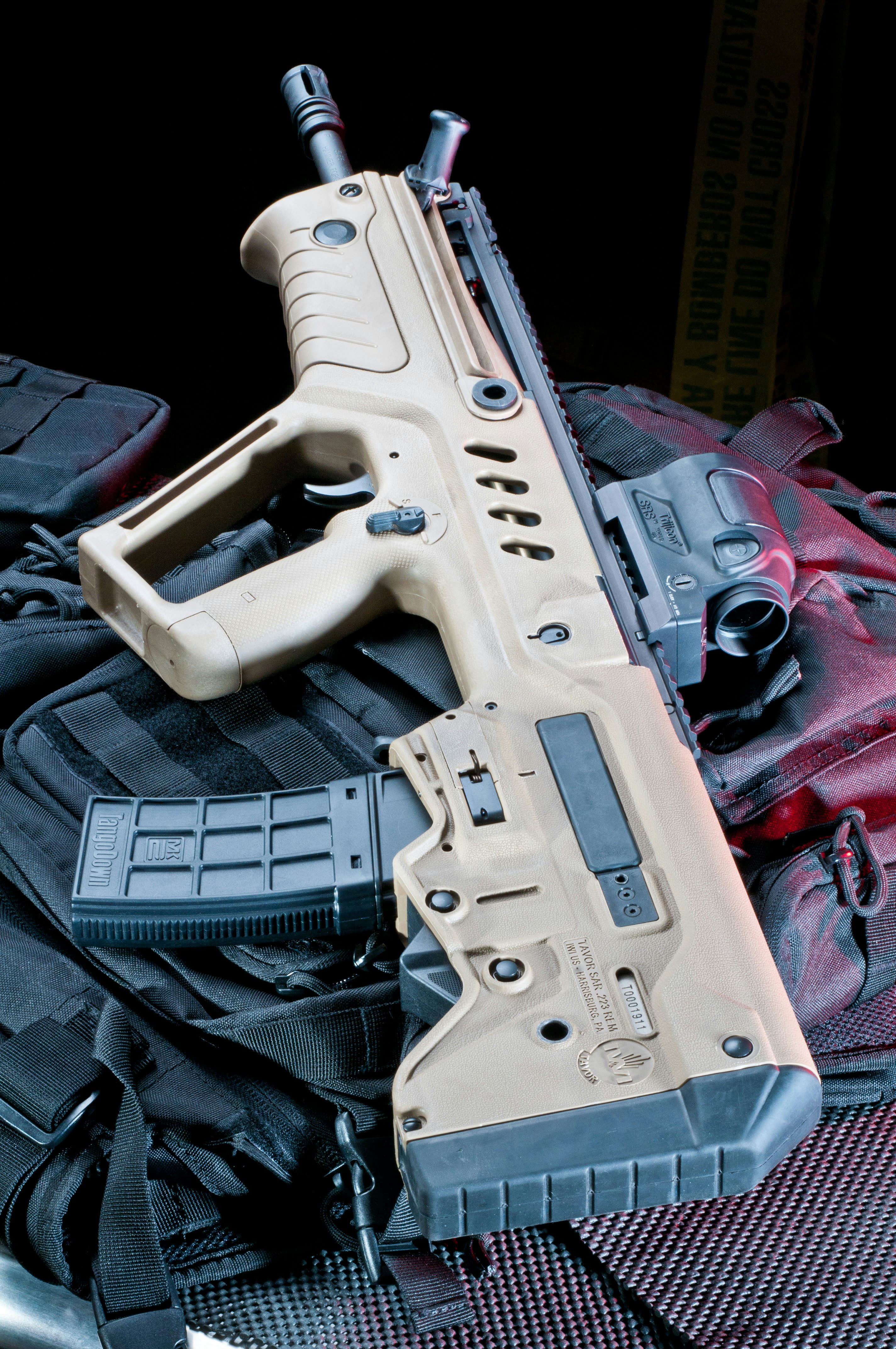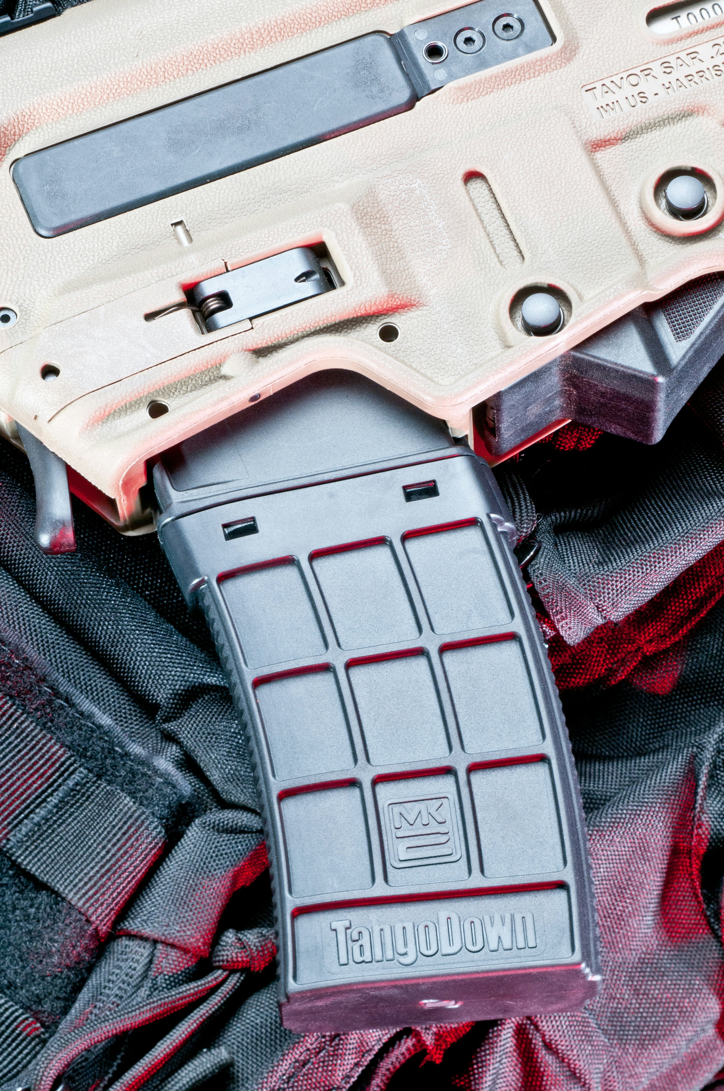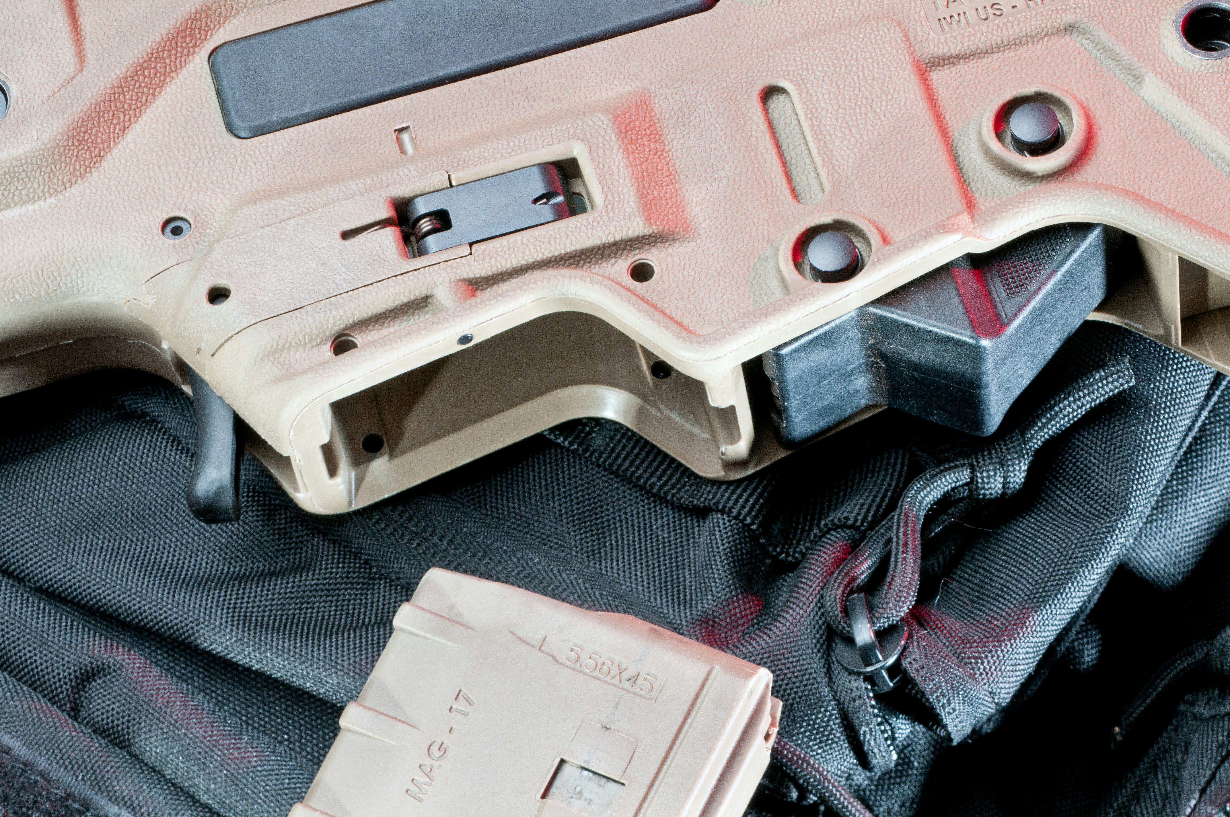 Tavors are available in select fire and semi-auto. The semi-auto model is pictured.