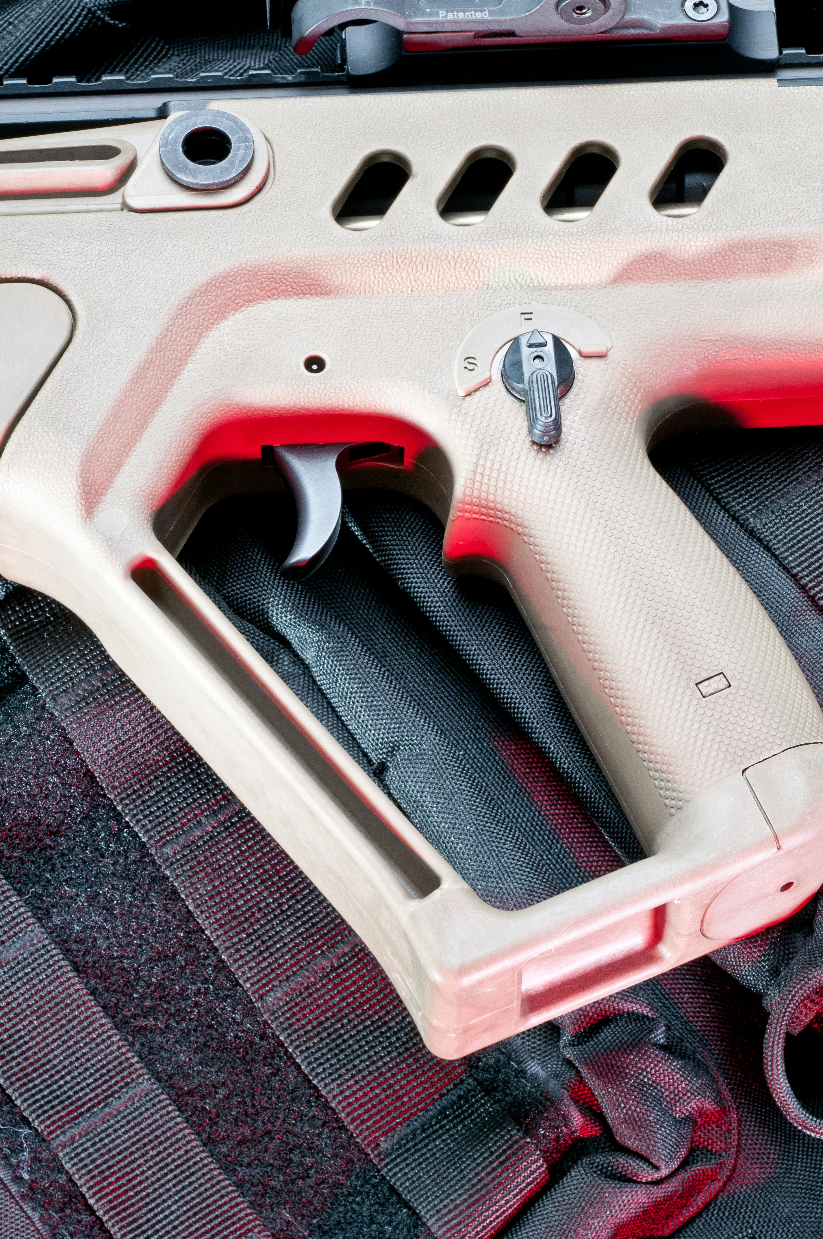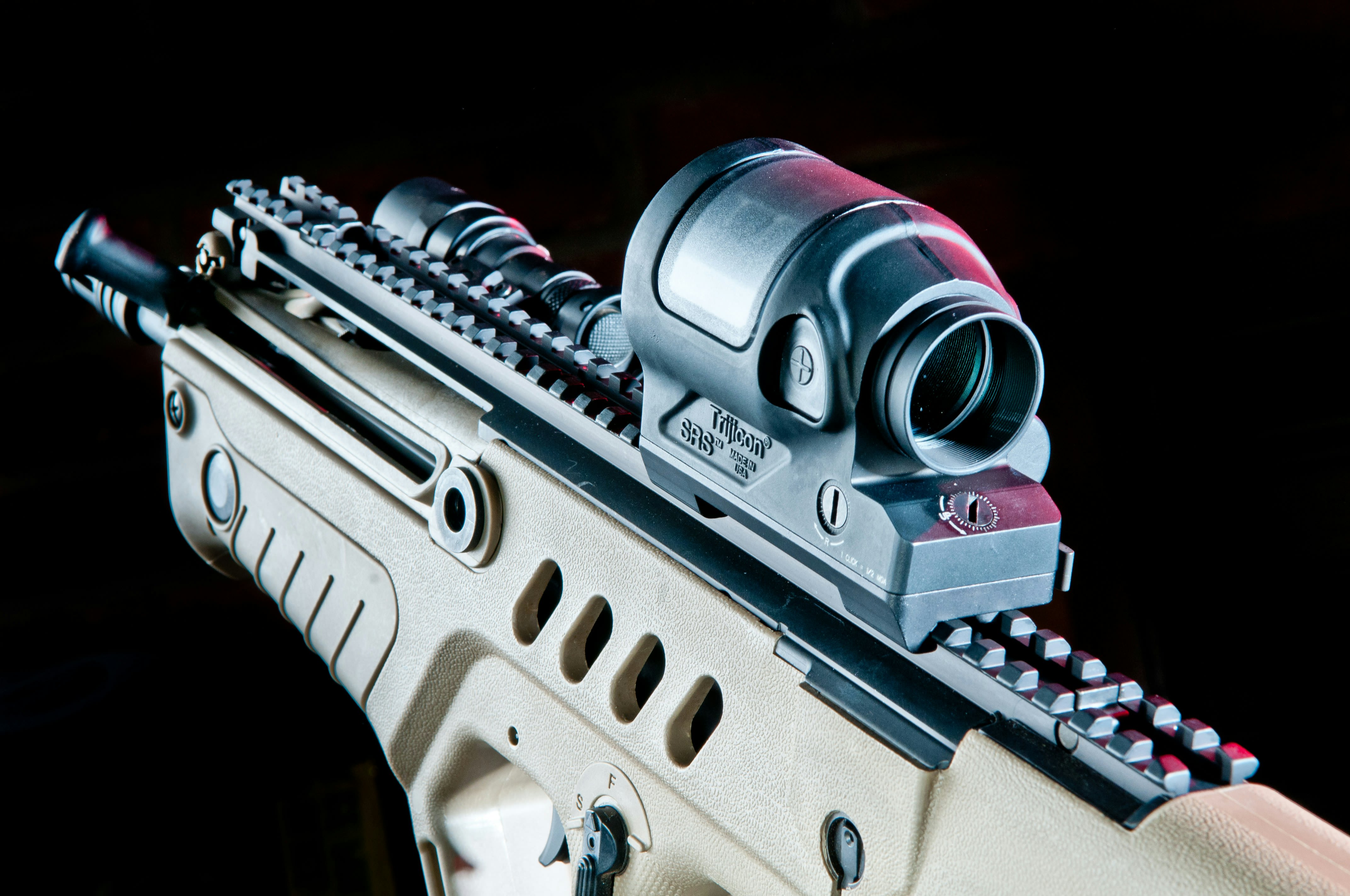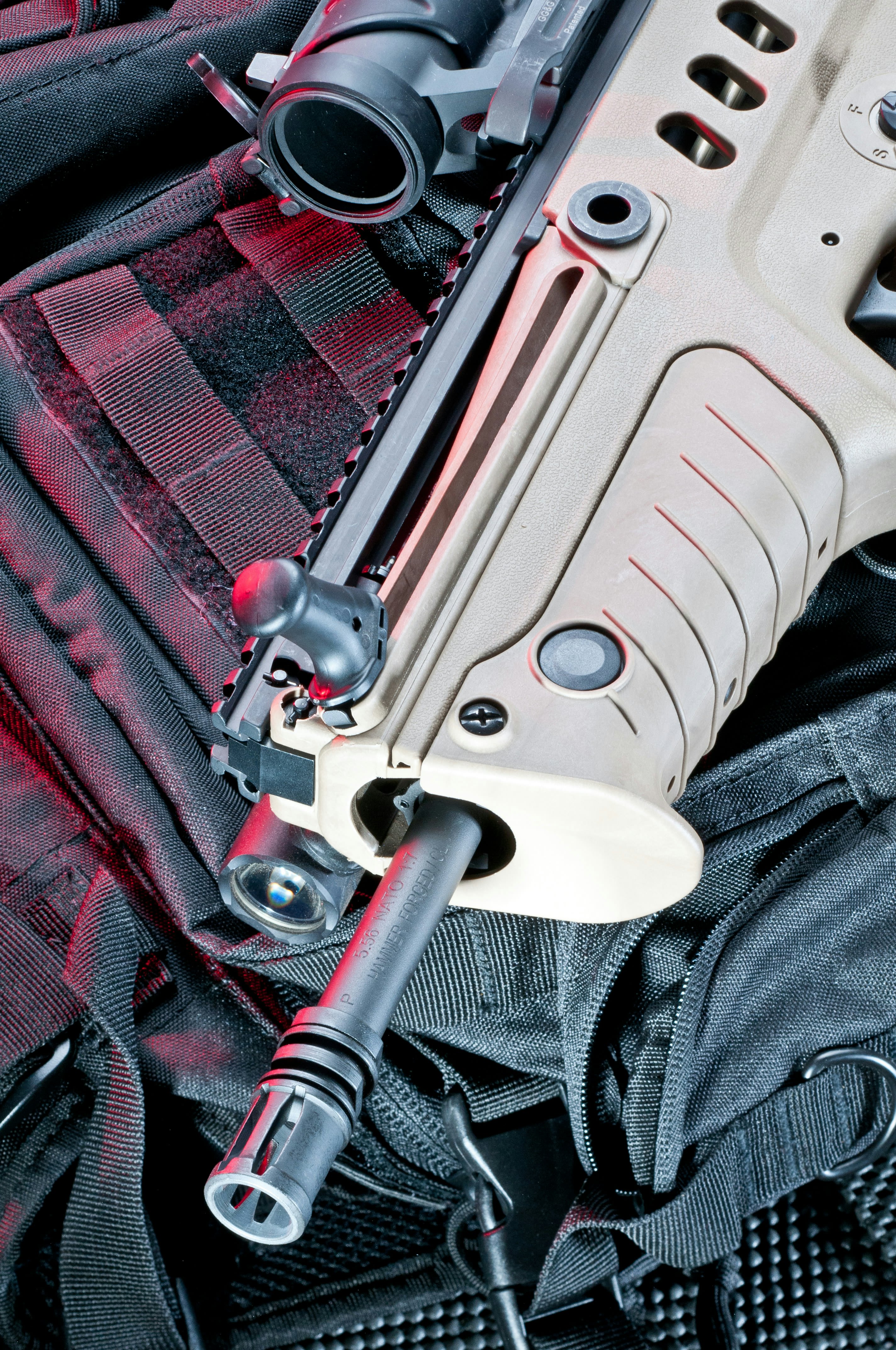 Tavors are available in select fire and semi-auto. The semi-auto model is pictured.