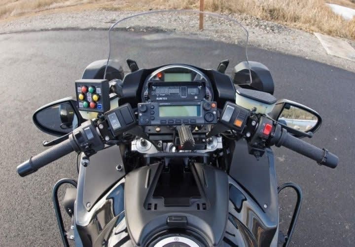 A variety of accessories are available, such as lockable holsters for radar/LIDAR mounted on the front, right side. A shotgun would be attached to a mount at the right, rear of the bike facing upside down behind the saddle bag.