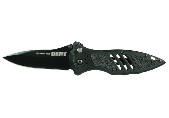 BlackHawk's CQD MKI Type E offers tough features such as its blade, locking mechanism, PVD coated AUS8A steel, double locks and recessed seat belt cutter. The Type E's frame is injection-molded reinforced nylon with stainless steel liners. The CQD MKI Type E is a large folder and comes with a sheath so you can carry it on your belt or tactical vest.