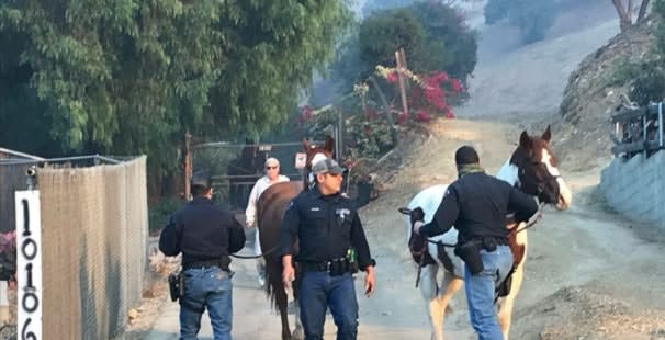 Officers from the LAPD's equestrian unit helped rescue horses trapped in the massive Creek Fire in Sylmar.