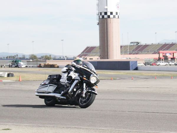 The Victory Commander 1 heads out of an S curve at the back of the road course.
