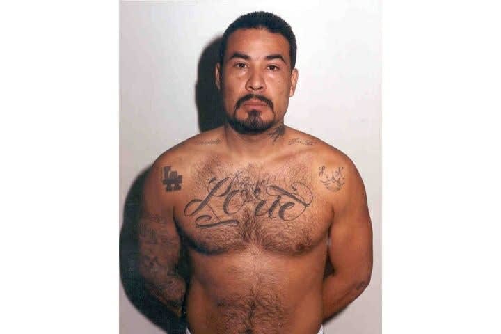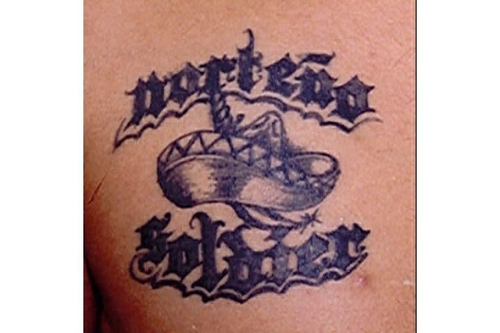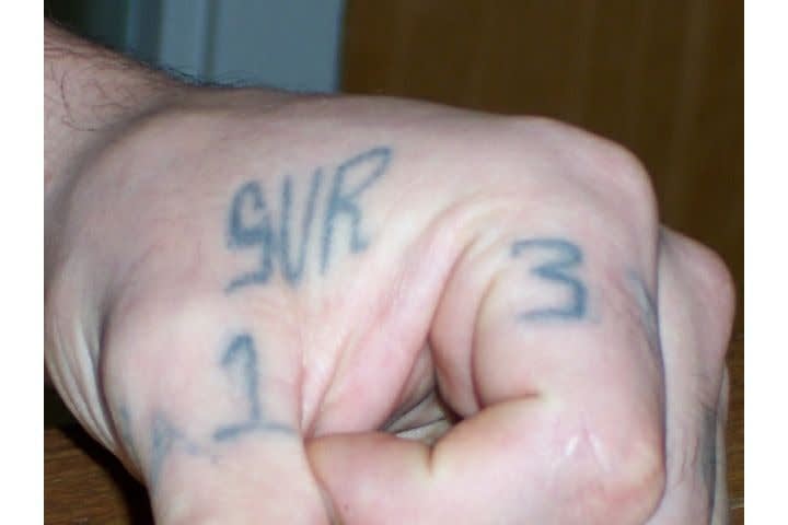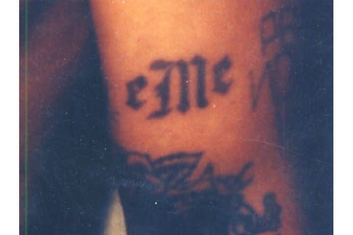 A Sureño tattoo on both calfs displays the use of the number 13.