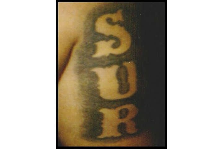 SUR is an acronym for "Southern United Raza," a sureño gang.