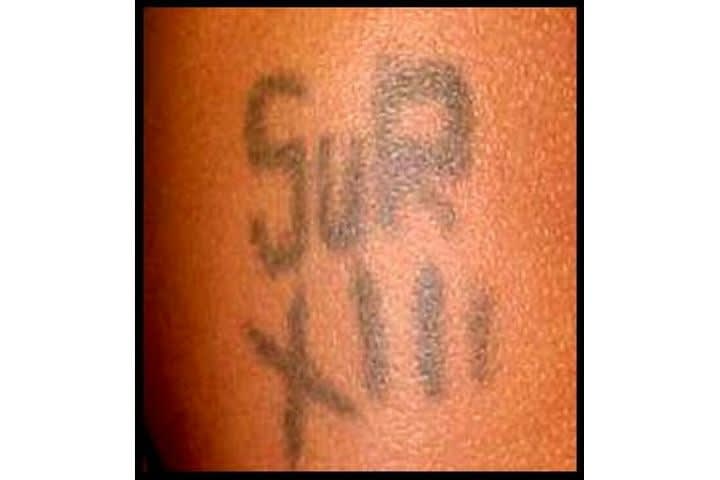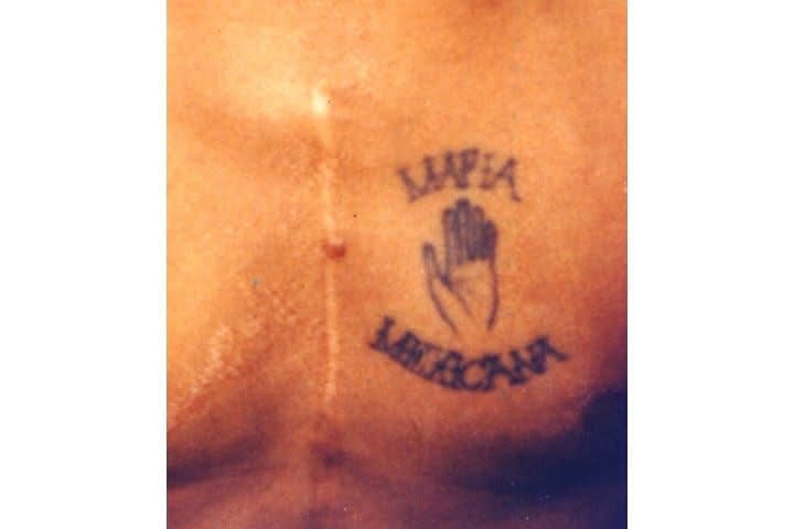 This "MS" tattoo identifies its owner as a member in Mara Salvatrucha, a large Hispanic gang formed in the Salvadoran community in Los Angeles. Some gang members were deported to El Salvador years ago and now the gang has spread throughout that country and Honduras. MS-13 (it is affiliated with the Mexican Mafia) spread throughout the United States as Central American immigrants came to America to find work. The gang is now very strong on the East Coast.