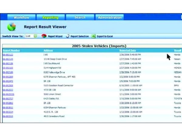 Known best for its computer-aided dispatch (CAD) software, New World Systems has also entered the records management market with Aegis RMS. The software allows offi cers and staff to streamline processes, easily perform inquiries, and automatically merge field reports. Aegis RMS provides powerful tools for both investigators and command staff, including analysis of statistical data, crime mapping, crime analysis, and ways to identify under served populations.