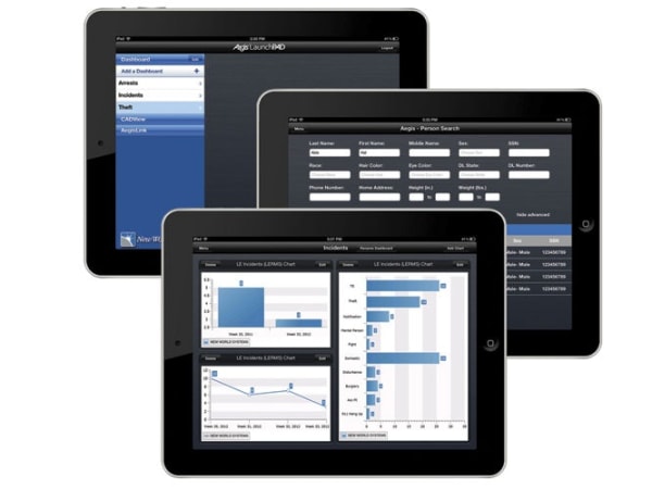 New World Systems introduced its Aegis LaunchPad public safety iPad application at the IACP conference last month in San Diego. Aegis LaunchPad provides officers role-based Dashboards, a dispatch and unit status monitor, and the ability to perform Web-based inquiries on their Apple iOS tablets, according to the company. New World also offers the Aegis Mobile Computing app for Police and Fire on Windows-based tablets. This tablet software solution provides messaging, mapping, inquiry, and police incident and fire inspections reporting, which helps officers and firefighters improve safety and increase efficiency from the field.