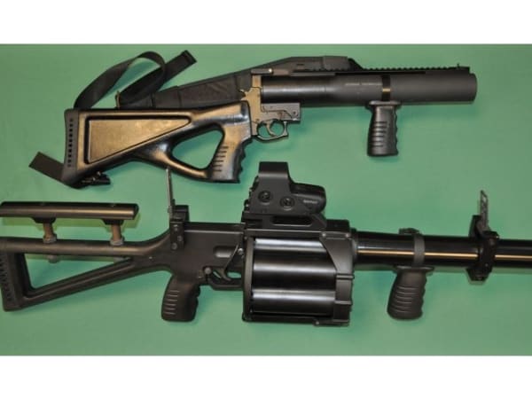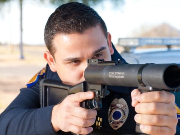 Less-lethal launchers propel 37 mm or 40 mm specialty rounds with chemical agents.