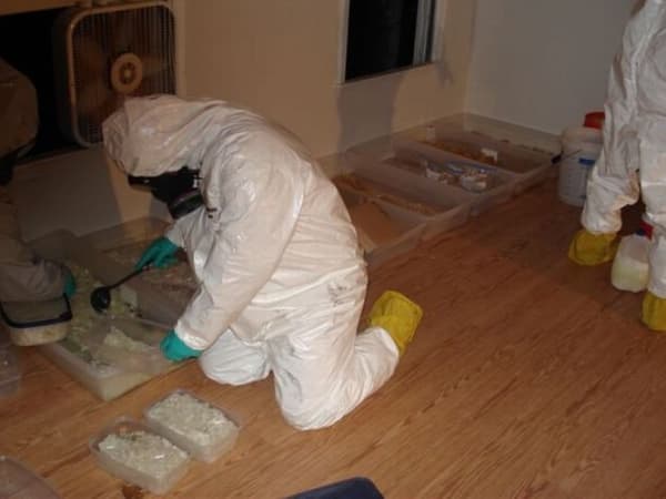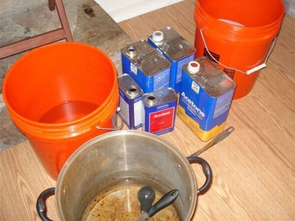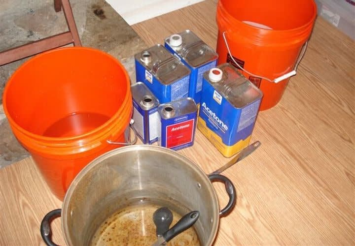 During the production of crystal meth, workers use acetone to wash off the oil, or "purify," the narcotic.